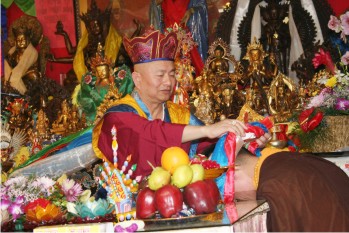 蓮極上師住在彰化八卦山,他就在八卦山的地方蓋了一個修行中心,將來可能蓋雷藏寺。我就給它起名〈彰化八卦雷藏寺〉。你們笑就是講說講「髒話」,八卦山就是八卦雜誌的八卦。 所以這個口清淨,就是要你講出來的話不能是髒話,不能是八卦,不能是妄語,不能是綺語,不能是兩舌,不能是惡口,所以你要禁你的口。身要淨,你不能有粗野的動作,發火的時候金剛杵拿起來,像金剛薩埵一樣,都不可以的,所以身體不能有粗野的動作,連眼睛也不可以。像我看到一個人,我討厭他,鼻子還哼一下,那是粗野的動作。那個是身清淨裏面有的,你必須動作舉止都非常安詳。嘴巴一定不能講不好聽的話,那是身清淨,口清淨,意念的清淨,很難,最難就是意念清淨。意念清淨,不要做出來,你知道了生、滅,剛剛出現的念頭不好,不好的念頭就越來越沒有。你知道你的念頭產生出來,發生了一件事情,哎呀,不對,那個不好,你這一種念頭就慢慢沒有,就清淨。人家突然之間罵你一下,你念頭產生了,真是的,不可以講,不可以講,那你的念頭就沒有了,這就是意念清淨,就是無念。我們每天同修,修身口意清淨,結手印,就是代表身體的清淨;觀想佛,代表本尊,上師,佛菩薩,是意念的清淨,我們持咒,「嗡。咕嚕。蓮生。悉地吽。」「嗡。嗎呢唄咪。吽。」「嗡。阿彌爹哇。些。」念咒的時候就是口清淨。更精進的清淨就是同修。你在同修時更精進地清淨自己的身口意。
