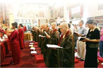 敬禮了鳴和尚、十六世大寶法王噶瑪巴、薩迦證空上師、吐登達爾吉上師。主持上師─蓮滿上師、師母、各位上師、教授師、各位法師、各位同門、網路上的同門,大家好。