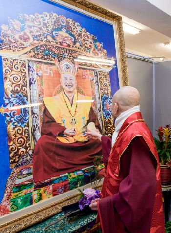 我們敬禮傳承祖師了鳴和尚,敬禮薩迦證空上師,敬禮十六世大寶法王噶瑪巴,敬禮吐登達爾吉上師,敬禮護摩主尊彌勒菩薩強巴佛,敬禮壇城三寶。