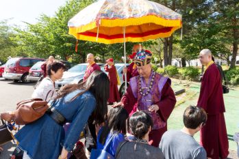 師母,丹增嘉措仁波切,各位上師、教授師、法師、講師、助教、堂主,各位同門,還有網路上的同門。今天與會的貴賓是:〈行政院北美事務協調委員會〉祕書長廖東周大使夫人Judy師姐、〈真佛宗宗務委員會〉會計師Teresa師姐and her husband、〈真佛宗宗務委員會〉法律顧問周慧芳律師、〈中天電視台〉「給你點上心燈」節目製作人徐雅琪師姐、周衡醫師、高歡嫻醫師、歐偉輝醫師、前〈僑委會〉副委員長薛盛華先生的夫人--薛王淑媚師姐。