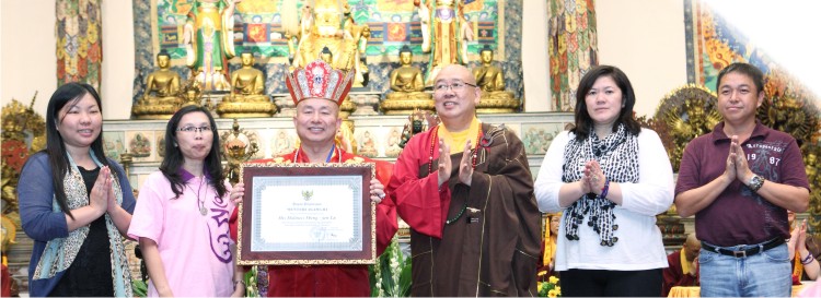 而在二○一二年四月二十八日〈台灣雷藏寺〉的「阿彌陀佛護摩大法會」後,由印尼蓮元上師及〈宗委會印尼辦事處〉的四位代表特別專程從印尼到台灣,將此獎狀親呈聖尊,此獎狀在印尼是為創舉,亦為《真佛宗》莫大的榮耀!