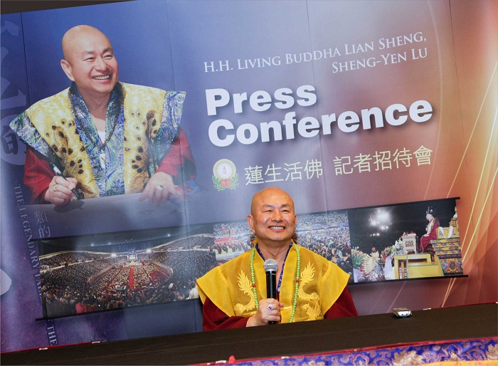 蓮生活佛在美國關島PIC會議中心接受聯合採訪