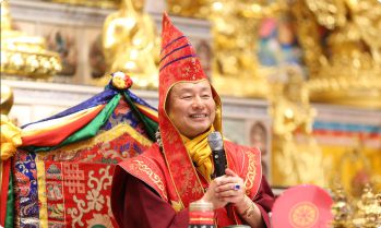 【燃燈雜誌‧草屯訊】二○一四年十二月二十日(週末),〈台灣雷藏寺〉恭請《真佛宗》根本傳承上師聖尊蓮生活佛盧勝彥法王親臨主持「愛染明王護摩大法會」及講解「大圓滿九次第法」。是日天氣晴朗,護摩爐前的紅蓮花在陽光下綻放,顯得分外鮮豔奪目,各式各樣的鮮花爭奇鬥艷,果然吸引眾多路過的同門請購香花供養諸佛菩薩。世界各地的真佛弟子們受到愛染明王大敬愛光的攝召,與會者尤其多,《真佛宗》的弘法人員列席護持者更是踴躍。