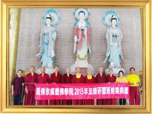 二○一五年七月十日上午十時整,《真佛宗》〈威德佛學院〉於〈台灣雷藏寺〉舉辦本年度的「法師研習班暨進修班」結業典禮。院長蓮哲上師在致詞中表示,經過十年的努力,佛學院已經累積很多師資教學經驗及教材編輯工作,取得不錯成果,但目前教育經費缺乏,希望各單位及同門踴躍捐款。