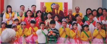 隨後登場的是二十幾位〈芝城雷藏寺〉舞蹈班小朋友,她們為老爺爺、老奶奶們獻上經典的童謠—〈兩隻老虎〉,並表演〈天路〉、〈家鄉〉、〈賀年舞〉等三段精彩的民族舞蹈。小公主合唱團還用童聲演繹了童聲版的『根本上師心咒』,她們的表演頓時讓整個會場歡騰起來,熱烈的氣氛深深地感染了平日生活寂寞的老人們,他們也隨著旋律,拍手助興,臉上快樂的表情頓時年輕了好幾歲。