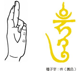結印:左手先握拳,中指伸直,食指屈按中指的指背。