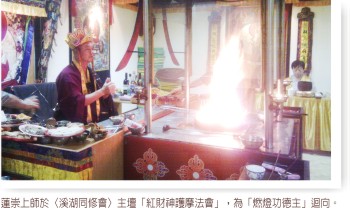 【溪湖文宣.溪湖訊】二○一一年十月九日,〈溪湖同修會〉恭請釋蓮崇金剛上師,主壇一場「紅財神息災祈福護摩法會」。時間特別選在雙十國慶的連續假期中,這是為了方便平日有心修法,卻必須忙碌討生活的同門,只要願意精進,即可抽空參加這場護摩。法會並為「燃燈雜誌功德主」做功德迴向。