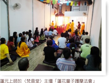 【蓮霞法師.雅加達訊】二○一一年十月二日印尼國雅加達市〈梵音堂〉舉辦「三千佛洪名寶懺拜懺大法會」及「蓮花童子息災祈福超度護摩大法會」。邀請巨港〈聖輪雷藏寺〉住持釋蓮元金剛上師主壇,釋蓮惺教授師、蓮霞法師、蓮手法師、蓮若法師護壇。