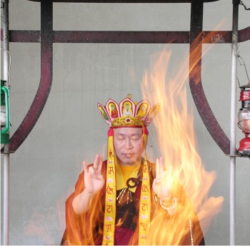【蓮花坤興.竹北訊】〈竹賢堂〉於二○一○年三月三日至六日,邀請到蓮僧上師蒞堂進行法務指導、主持兩壇「馬上有錢法」及一壇「大白蓮花童子護摩法會」。蓮僧上師目前身兼舊金山〈尊勝雷藏寺〉住持及《宗委會》處長等職務,並致力於師尊文集的翻譯,對於法務推廣有豐富的經驗。