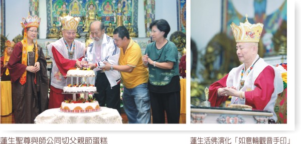最後,〈台灣雷藏寺〉準備了父親節蛋糕,為慶祝即將到來的「父親節」,恭請師公上台與聖尊一起接受與會大眾的祝賀,並預祝全天下的父親—「八八節」快樂!