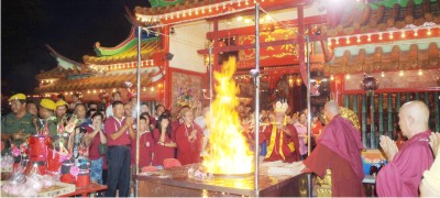 【馬密總文宣.詩巫訊】二○一二年八月卅日,應詩巫百年大伯公廟—〈永安亭〉的邀請,蓮花盛法金剛上師前往主持一壇「地藏王護摩法會」。八月卅一日,再受詩巫〈探花府觀音堂〉的邀請,蓮花盛法金剛上師應邀前往主持誦經及施食。